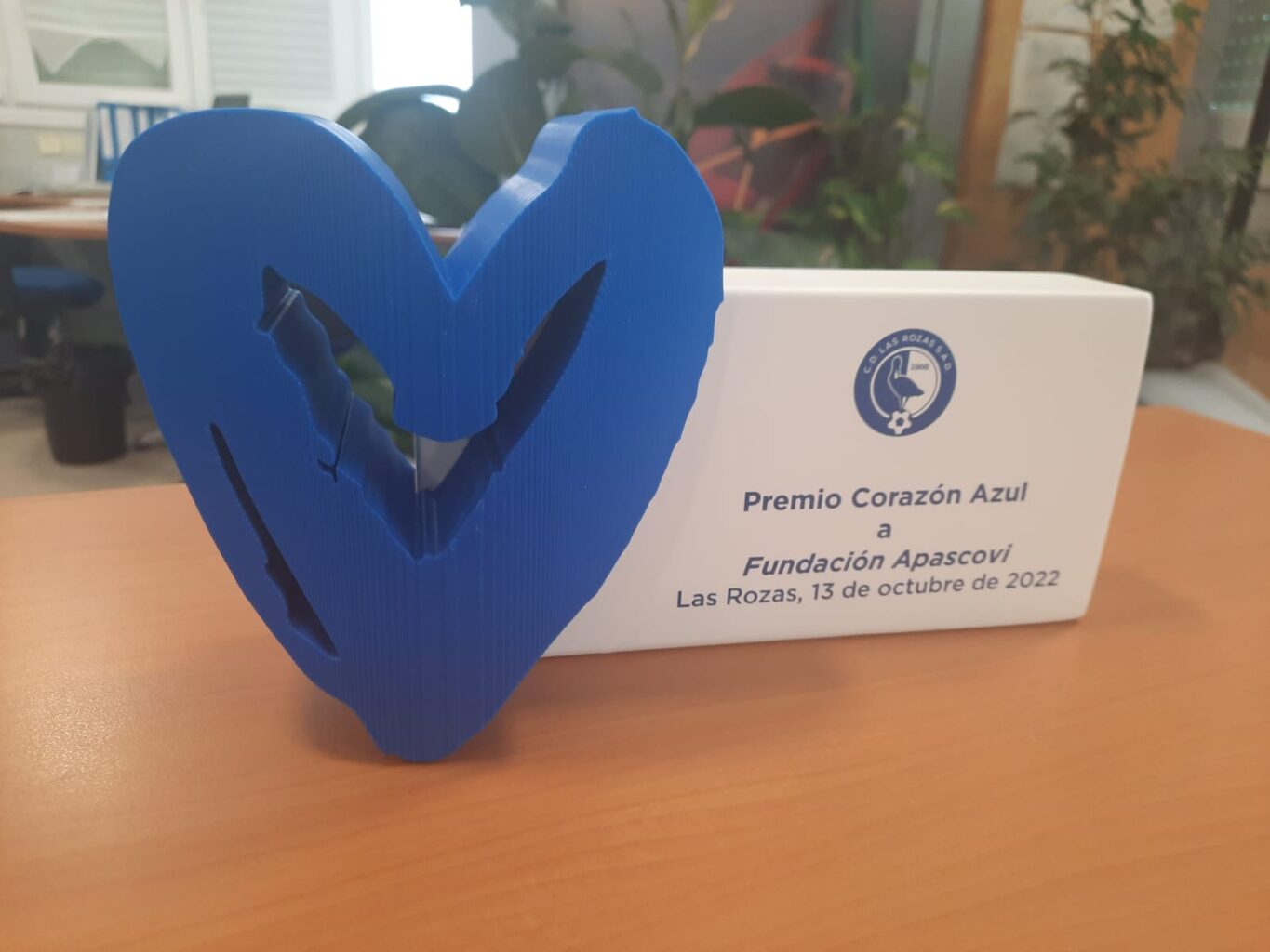 El pasado jueves 13 de octubre tuvo lugar en el polideportivo Navalcarbón de Las Rozas la quinta edición Premios Corazón Azul, organizada por Las Rozas C.F., en la que la Fundación APASCOVI fue galardonada.