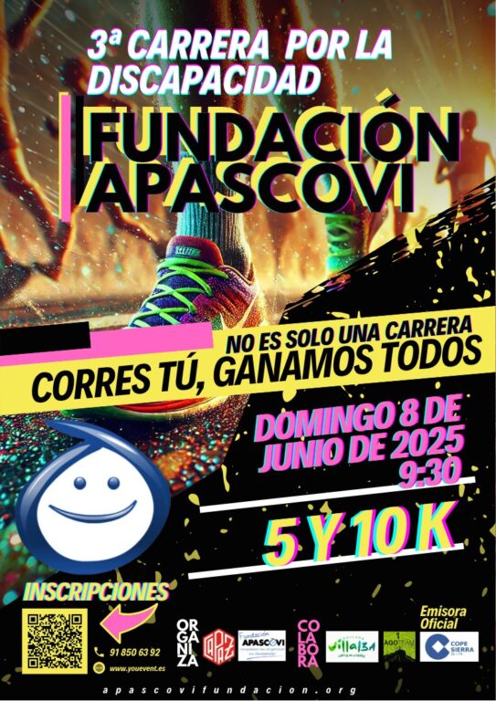 El próximo domingo 8 de junio tendrá lugar la tercera edición de la Carrera por la Discapacidad Capaz APASCOVI, un evento deportivo y familiar, que se celebrará en la Ciudad Deportiva de Collado Villalba, donde los participantes podrán participar en dos pruebas, de 5 y 10 kilómetros de recorrido por este municipio, además de disfrutar de una divertida mañana.