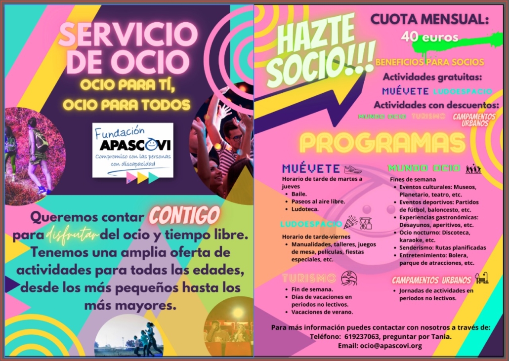 Esta es la programación que hemos preparado para el próximo mes de octubre: Ocio Apascovi – ofertas actividades octubre