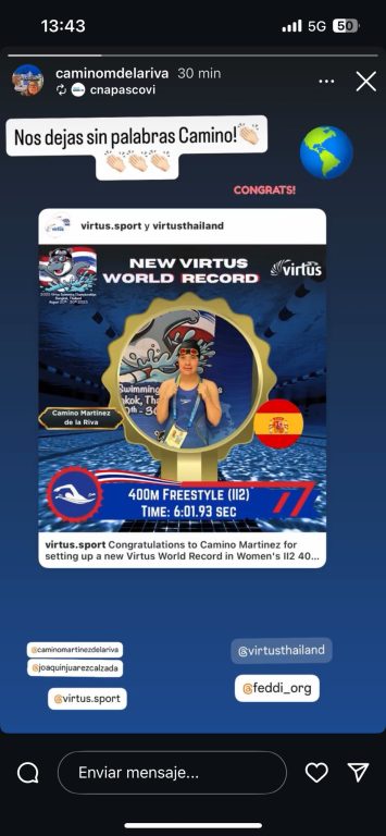 Esta hazaña mundial no solo celebra el trayecto y trabajo de Camino Martínez, sino que sitúa a Galapagar y a España en el mapa internacional de la natación adaptada, reafirmando el compromiso con la promoción de la igualdad y el talento de los deportistas de alto nivel con discapacidad intelectual.