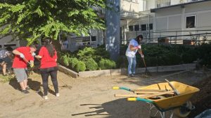 Durante la jornada, las personas voluntarias realizaron tareas de manipulado, limpieza de jardines, plantación y restauración de zonas ajardinadas, incluido el barnizado de elementos de madera para alargar su vida útil y mejorar la seguridad y la estética del entorno.