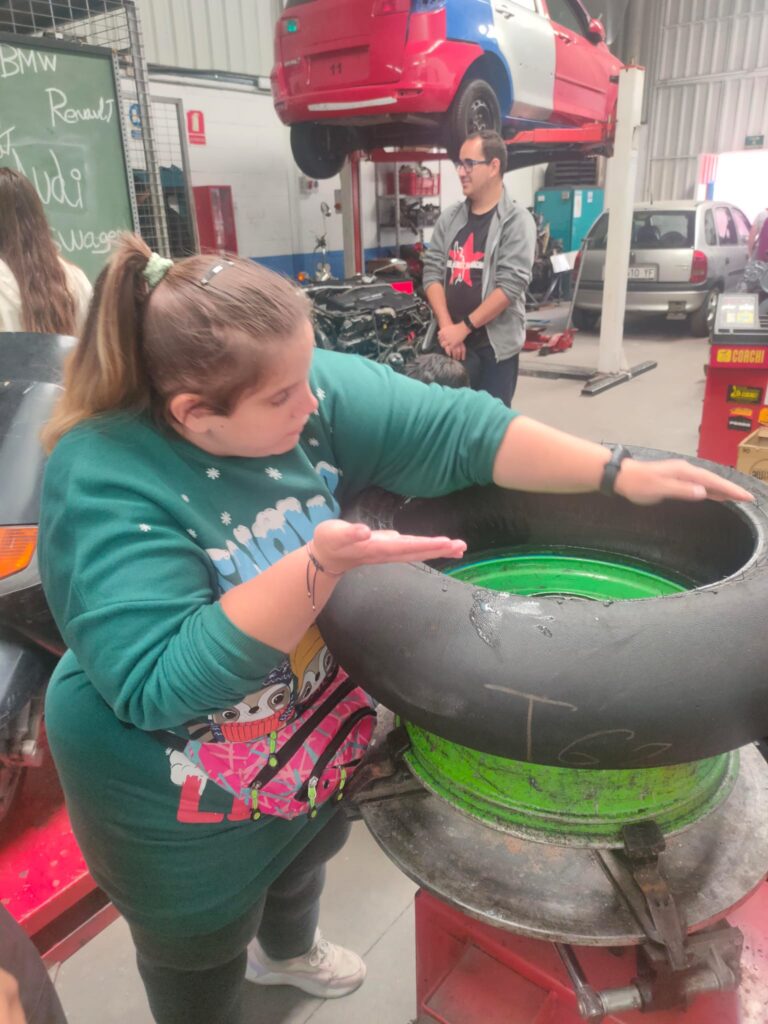 Hace unos días, personas usuarias del COFOIL que la Fundación APASCOVI tiene en Colmenarejo han visitado el Taller Profesional de Automoción de Aldeas Infantiles en Collado Villalba, concretamente en el P-29, en la calle Husillo.