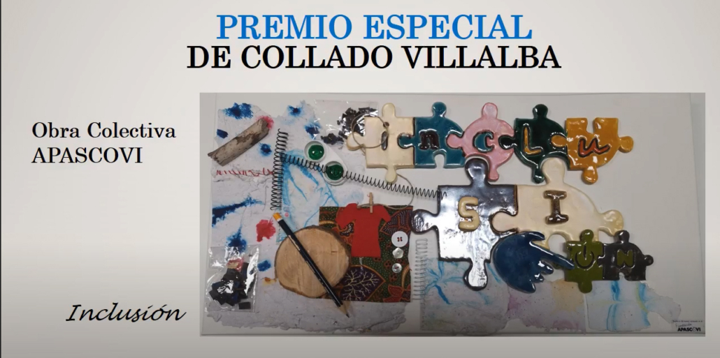 La Concejalía de Juventud del Ayuntamiento de Collado Villalba ha otorgado el Premio Especial del Certamen de Jóvenes Artistas 2021 a la obra colectiva “Inclusión”, realizada en cerámica y técnica mixta realizada por un grupo de jóvenes de la Fundación APASCOVI.