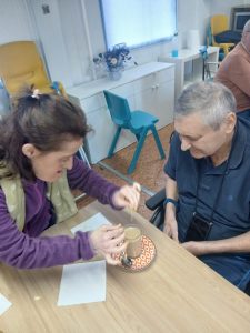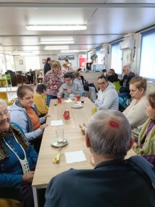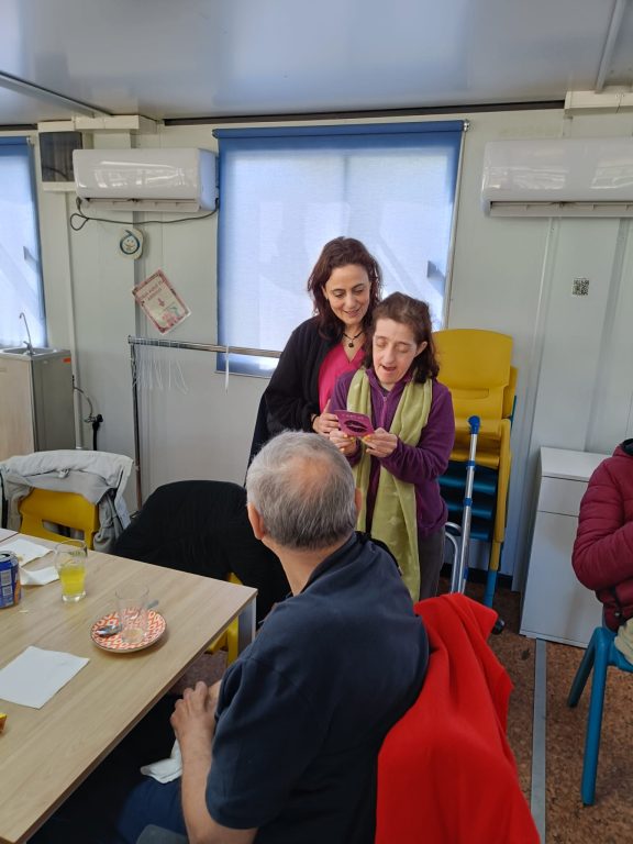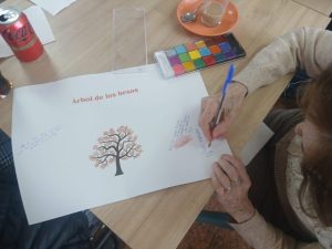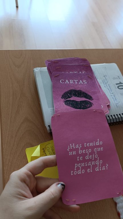 La jornada comenzó con una dinámica simbólica en la que, de forma voluntaria, los participantes se pintaron los labios para dejar su huella y compartir gestos de cariño. A continuación, se desarrolló una actividad de tarjetas con preguntas que invitaban a la conversación y al recuerdo, como “¿recuerdas cuál fue tu primer beso?” o “¿cómo fue?”, generando momentos de diálogo, risas y conexión entre los asistentes.