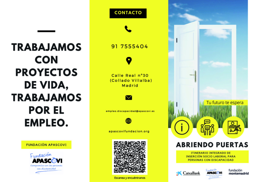 APASCOVI ha desarrollado otro año más con éxito el proyecto Abriendo Puertas, un servicio de empleo con itinerarios integrados de inserción socio-laboral para personas con discapacidad, con el propósito de aumentar la empleabilidad de sus participantes dotándoles de las competencias necesarias para facilitar el acceso a un puesto de trabajo, desarrollado gracias al apoyo de la Comunidad de Madrid y el Fondo Social Europeo y la cofinanciación de Obra Social La Caixa.