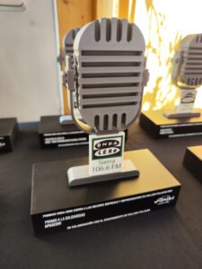 El edificio de la Cantera de Empresas, en el polígono P-5, fue el escenario desde donde la locutora de esta emisora de radio Mónica Rodríguez, acompañada de la edil de Desarrollo Local, Estela Mosquera, fue presentando a los diferentes galardonados.