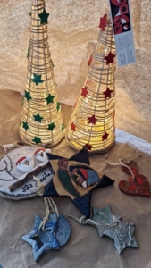 Marcos de fotos, botellas con luces, farolillos, gnomos de piñas, adornos navideños, cuadros, carteras, bandejas, posavasos, belenes artesanales, cuadernos y agendas, ceniceros, broches…, son algunos de los obsequios que podrás adquirir desde dos euros. Harás un bonito regalo a tus familiares, amigos…, y colaborarás con los fines sociales de nuestra Fundación.