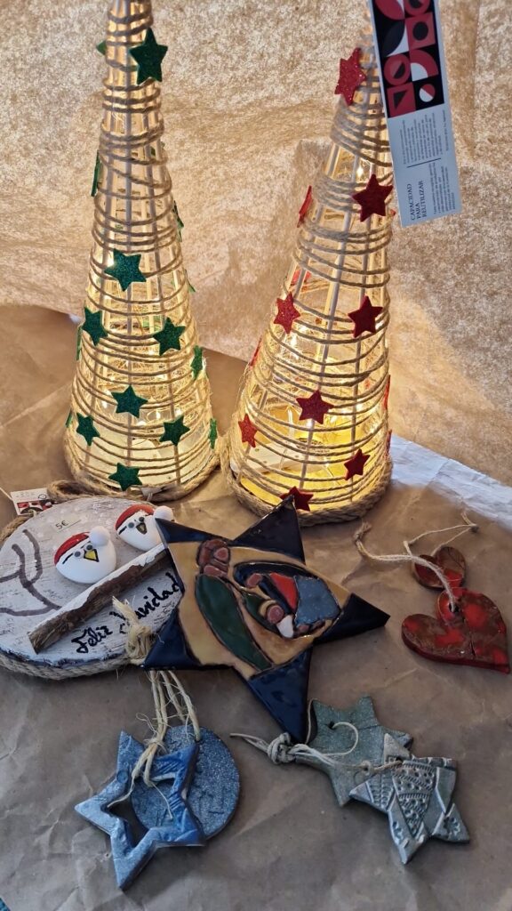 En APASCOVI ya se siente la Navidad. Y es que las personas usuarias con discapacidad intelectual de los talleres ocupacionales de Copistería y Encuadernación, Reciclado y Cerámica ya se han puesto manos a la obra para elaborar una gran variedad de adornos a los que no podrás resistirte.