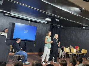 Hoy, cuatro personas usuarias del COFOIL de Collado Villalba han visitado el IES Jaime Ferrán para participar en la presentación del proyecto solidario, impulsado por la Asociación Cen con C (Cuentos Escritos por Niños con Corazón), que consiste en la escritura de un libro solidario.